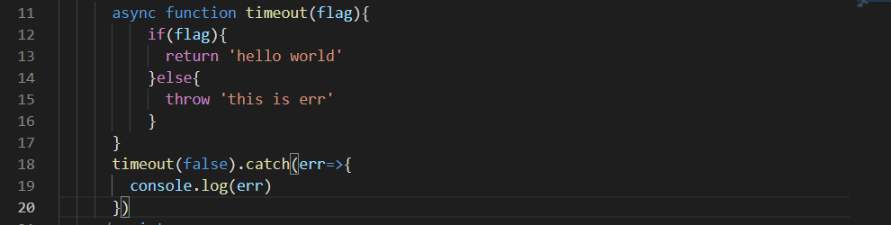 如果函数内部抛出错误, promise 对象有一个catch 方法进行捕获。