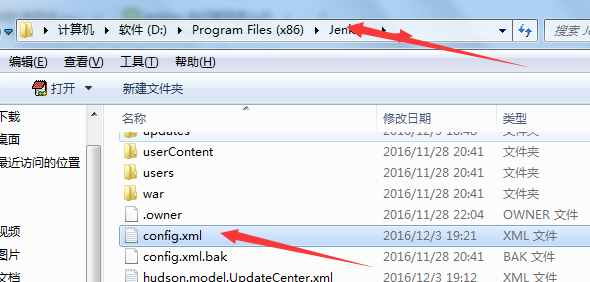 1 进入到安装jenkins路径,找到jenkins安装的配置文件 config.xml