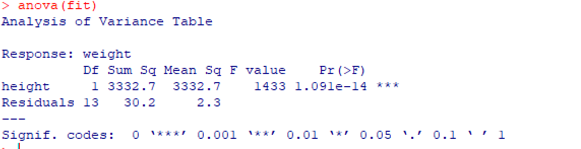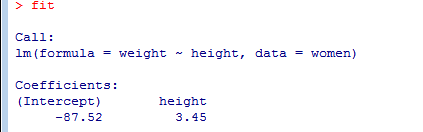 两者的线性关系:fit<-lm(weight~height,data=women)