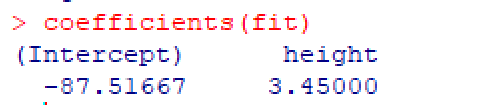 coefficients(fit)列出拟合模型的模型参数(截距项和斜率)