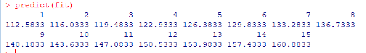 predict(fit)用拟合模型对新的数据集预测响应变量值。