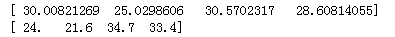 from sklearn import datasets from sklearn.linear_model import LinearRegression #来导入sklearn提供的波士顿房价的数据 loaded_data = datasets.load_boston() X_data = loaded_data.data y_data = loaded_data.target model = LinearRegression() #模型用线性回归哟 model.fit(X_data,y_data) #先显示前面4个 print(model.predict(X_data[:4,:])) print(y_data[:4])