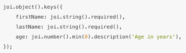 而 joi 是 hapi 提供的 validator,接口很人性化,相同的 schema,描述起来代码量只有前者的 1/3: