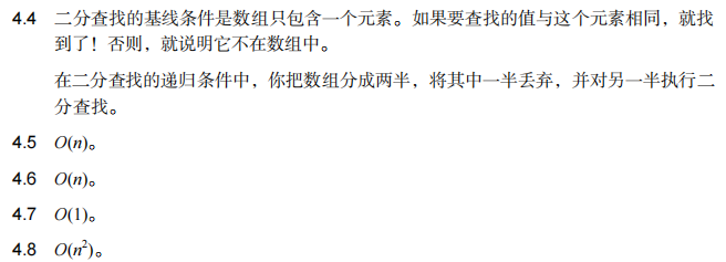 (4)比较简单查找和二分查找时,常量几乎无关紧要,由于列表很长是,O(log n)的速度比O(n)快得多。但是在比较快速排序于合并排序的时候又是事关紧要的。