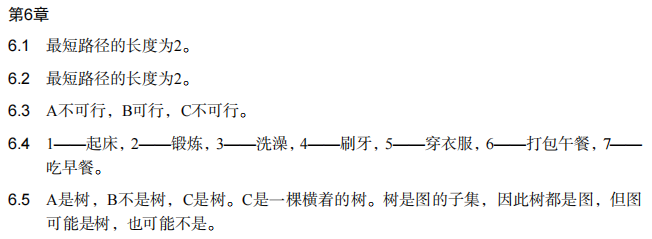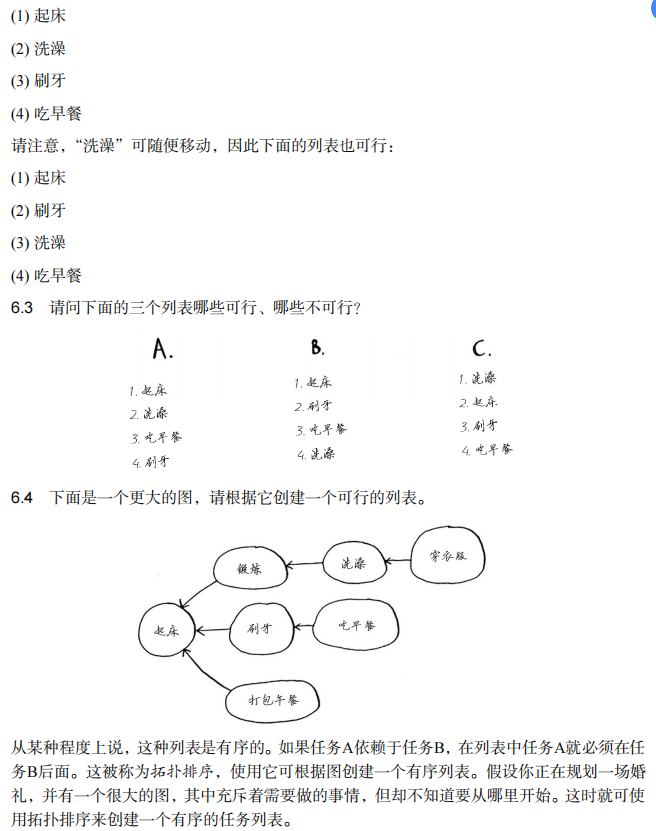 6.3 A不可行:吃早餐依赖于刷牙;B可行;C不可行:起床是起点。