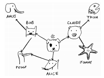 graph={} # “you”映射到一个数组,包括了“you”的所有邻居 graph["you"]=["alice","bob","claire"]