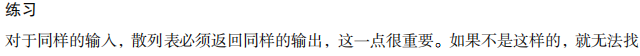 (1)散列函数总是将相同的输入映射到相同的索引;将不同的输入映射到不同的索引。