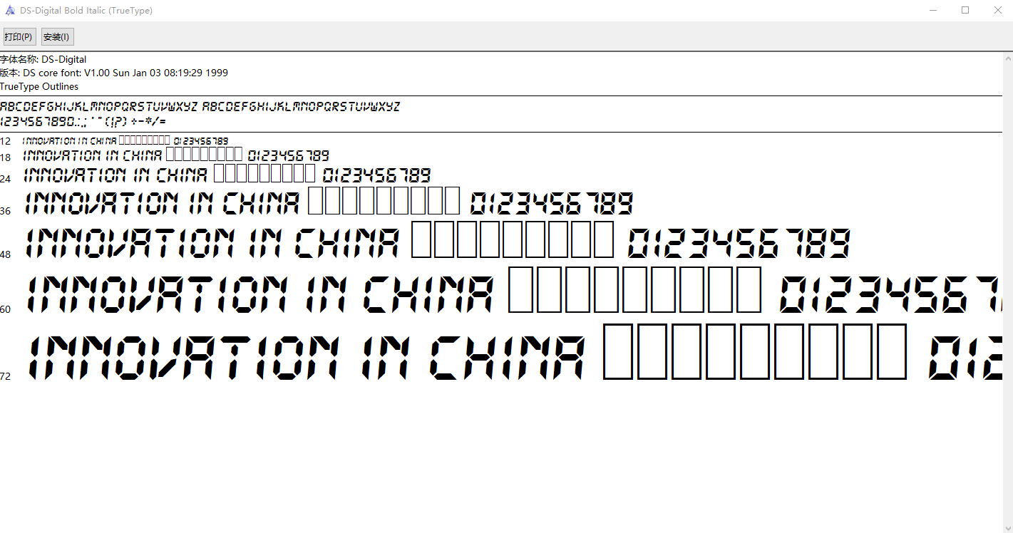 1、系统中不自带数码管字体,我们需要下载该字体,然后安装字体到系统中。