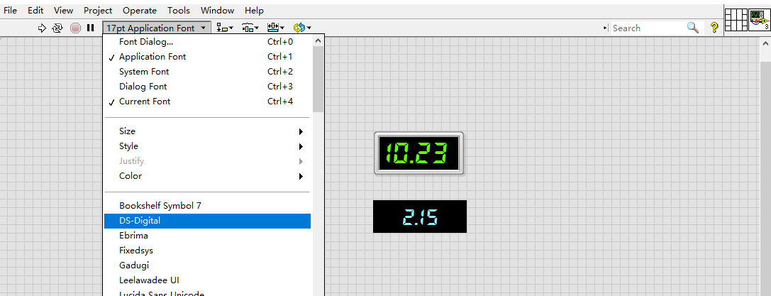 2、在LabView界面中将控件的字体选择为该字体。