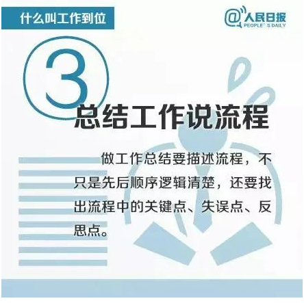做工作总结要描述流程,不只是先后顺序逻辑清楚,还要找出流程中的关键点、失误点、反思点。