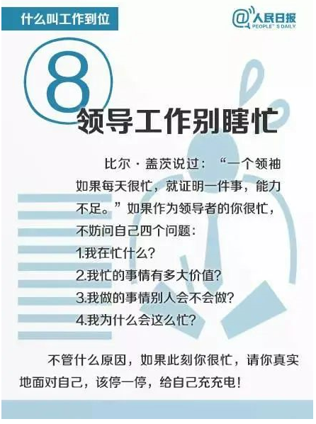 作为领导的你,不管什么原因,如果此刻你很忙,请你真实的面对你自己,该停一停,并给自己充充电,学习学习“放下”的领导艺术了!