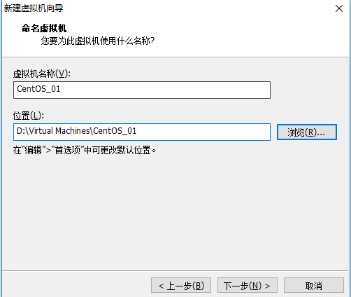 4.为虚拟机命名(因为后期要搭建集群所以选择序号命名)及设置虚拟机存储位置