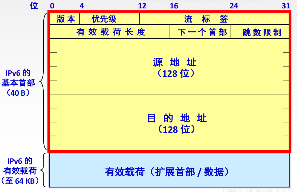 2.取消了首部长度字段,因为它的首部长度是固定的(40字节)