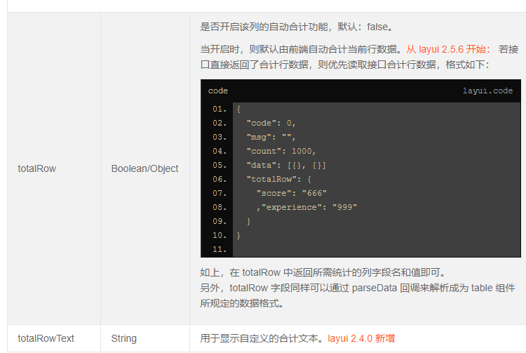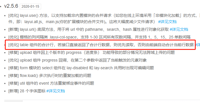 重中之重:官网文档上写的很清楚,1.5.5是仅支持合计当前页数据,意义不大。但年初layui更新的版本支持了所有列合计。