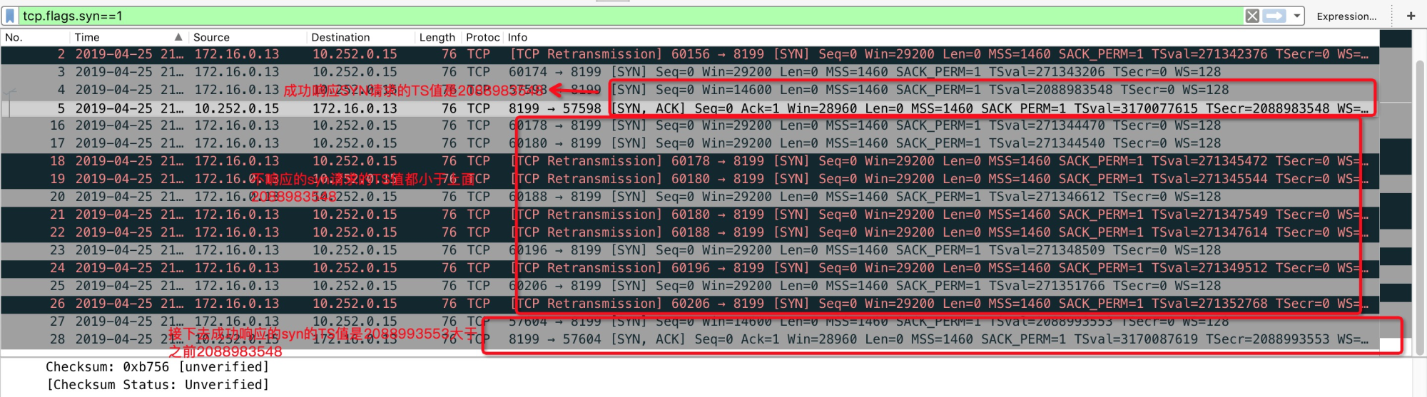 说明就是由于syn包相应连接的时间戳问题导致的。
