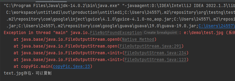 System.out.println("text.jpg不存在,新建成功,可以复制");
