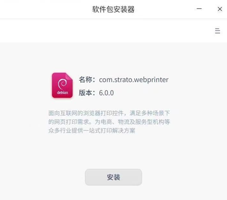 ①进入智睦云打印官网https://any.webprinter.cn/download免费下载统信UOS系统专用的安装包。下载完成后直接双击安装包,点击“安装”按钮。如图: