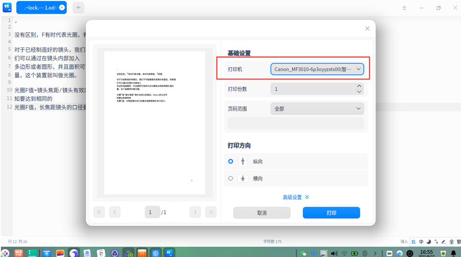 1、打开电脑本地文件进行打印,选择打印机中的“智睦云打印机”,直接打印即可;