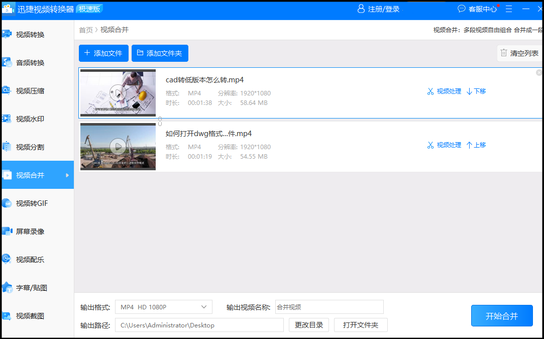 视频合并是将多个视频文件组合成一个文件的过程。这种过程通常用于电影制作、视频编辑和其他多媒体项目中。那么,怎样把两个视频合并成一个视频?下面小编就以迅捷视频转换器软件为例来给大家分享一下视频合并的具体步骤。