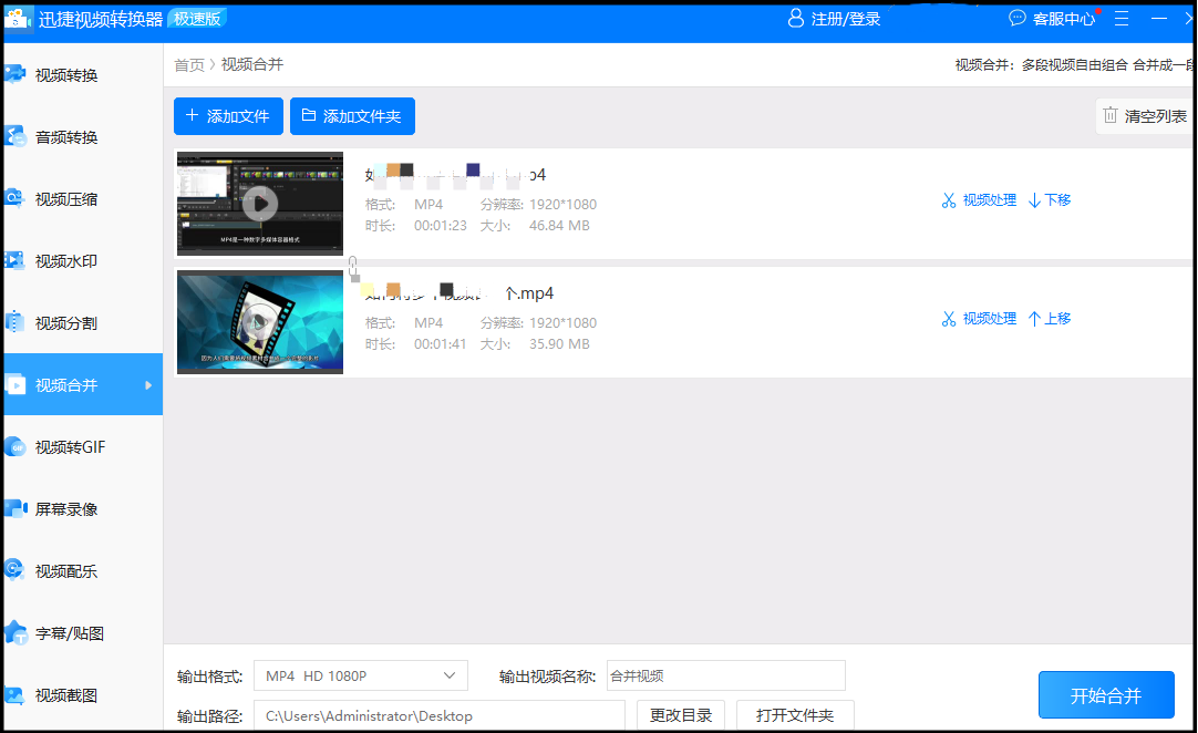 - 点击“开始合并”按钮,等待合并完成即可。如下图所示:
