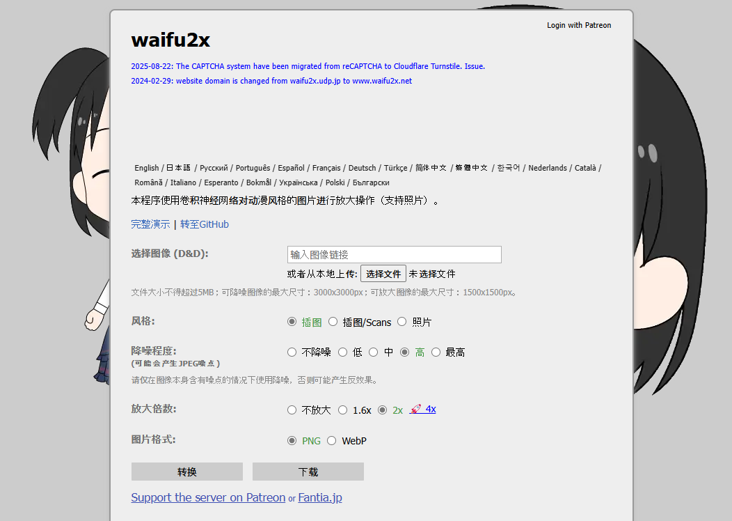 一个使用卷积神经网络对动漫风格图片进行放大和降噪的在线网站,对于游戏截图、动漫壁纸、手绘插画这类本身带有“绘画感”的图片,Waifu2x的降噪程度和放大倍数其处理效果常常比通用工具更细腻、更符合原作风格。