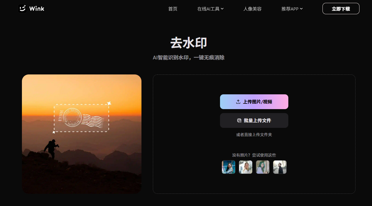它同样支持自动识别,能快速抹去水印。其主要的限制在于视频时长,免费处理单条不超过1分钟,适合短视频素材内容处理,上传视频,就可以在线自动去水印。