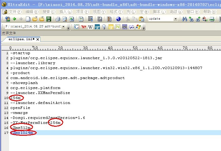 更改后文件为下图所示(红色圆圈中为所做改动之处)