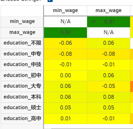 使用datle进行相关性分析,由此可知,学历和工资之间的相关性不大