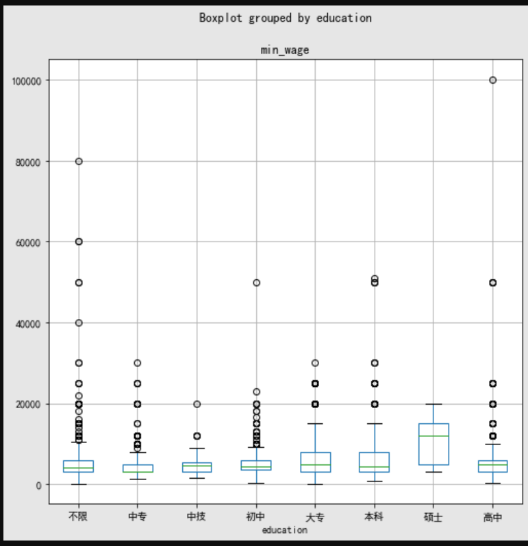 2.5 不同学历的最低工资和最高工资的分布关系