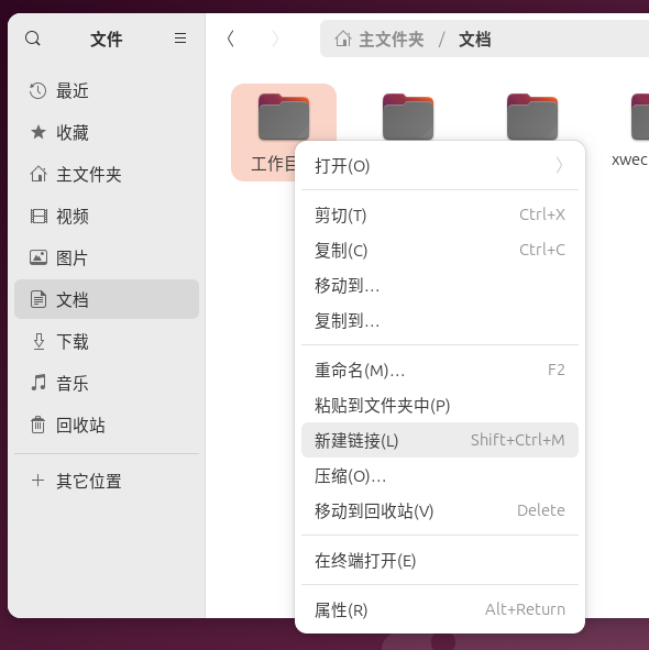 『ubuntu使用」在桌面建立一个文件夹的快捷方式