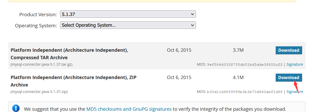 - 导入驱动jar包:下载地址 MySQL :: Download MySQL Connector/J (Archived Versions)