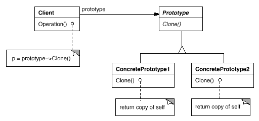 - 当一个实例只能有几个不同状态组合中的一种时。建立对应数目的原型并克隆他们可能比每次都进行手工实例化更加方便。