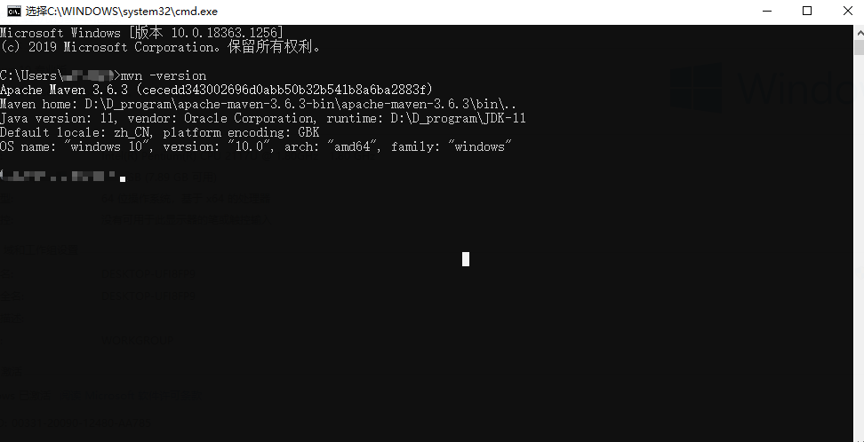 输入命令mvn -version,出现如下信息即配置成功