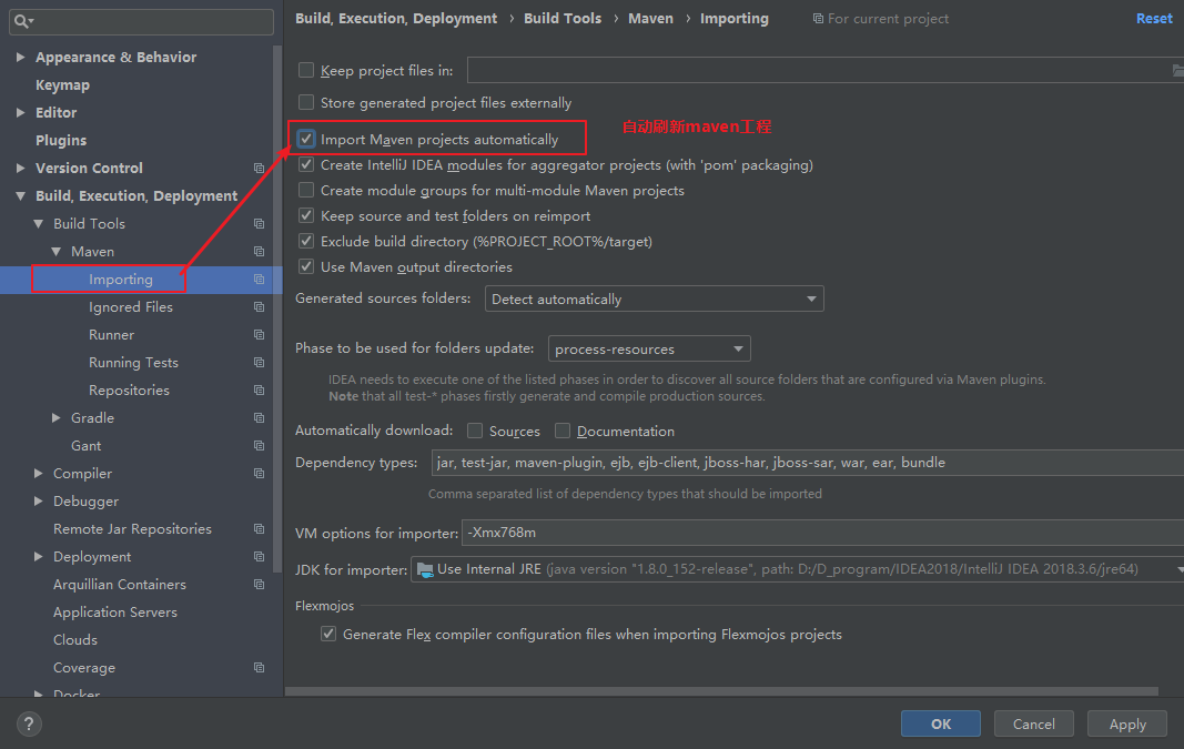 b.配置自动刷新maven,idea2020之前的该功能需要手动设置,idea2020之后的版本默认自动刷新,不需要进行配置