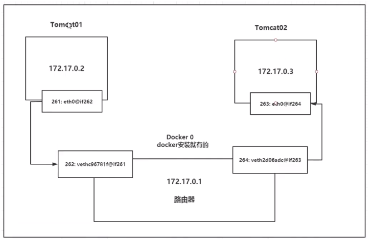tomcat01和tomcat02是用的一个公用的路由器:docker0.
