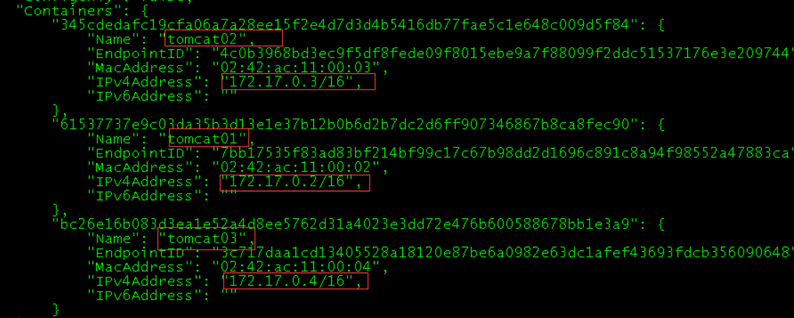 #查看hosts配置 [root@VM-0-14-centos ~]# docker exec -it tomcat03 cat /etc/hosts 127.0.0.1 localhost ::1 localhost ip6-localhost ip6-loopback fe00::0 ip6-localnet ff00::0 ip6-mcastprefix ff02::1 ip6-allnodes ff02::2 ip6-allrouters 172.17.0.2 tomcat01 61537737e9c0 172.17.0.4 bc26e16b083d