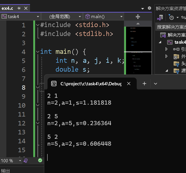 1 #include <stdio.h> 2 #include <stdlib.h> 3 4 int main() { 5 int n, a, j, i, k; 6 double s=0.0; 7 8 while (scanf_s("%d%d", &n, &a) != EOF) { 9 10 for (i = 1; i <= n; i++) { 11 k = 0; 12 for (j = 0; j < i; j++) { 13 k = k * 10 + a; 14 } 15 s += (double)i / k; 16 } 17 printf("n=%d,a=%d,s=%1f\n\n", n, a, s); 18 } 19 return 0; 20 }