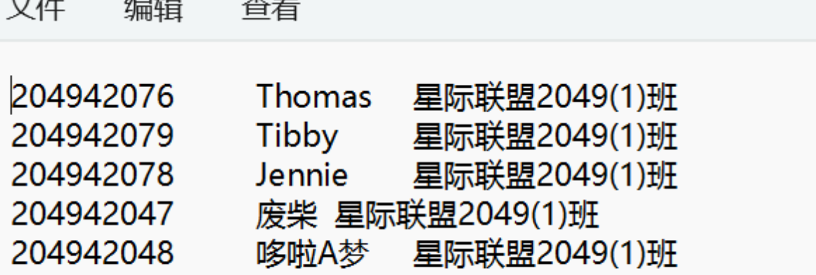1 #include <stdio.h> 2 #include <time.h> 3 #include <stdlib.h> 4 5 #define N 80 6 #define M 100 7 typedef struct { 8 long int id; 9 char name[10]; 10 char c[20]; 11 }STU; 12 13 14 int main(){ 15 STU st[M]; 16 int i,n; 17 FILE *fin; 18 FILE *fp; 19 20 fin = fopen("list.txt", "r"); 21 if (fin == NULL) { 22 printf("fail to open file\n"); 23 exit(0); 24 } 25 26 while (!feof(fin)){ 27 for(i=0;i<N;i++) 28 fscanf(fin,"%ld %s %s",&st[i].id,st[i].name,st[i].c); 29 } 30 31 fp = fopen("lucky.txt", "w"); 32 if(fp == NULL) { 33 printf("fail to open file\n"); 34 return 0; 35 } 36 37 srand(time(0)); 38 for(i=0;i<5;i++){ 39 n=rand()%80; 40 fprintf(fp,"%ld %-10s %-20s\n",st[n].id,st[n].name,st[n].c); 41 printf("%ld %-10s %-20s\n",st[n].id,st[n].name,st[n].c); 42 } 43 44 fclose(fin); 45 fclose(fp); 46 return 0; 47 }