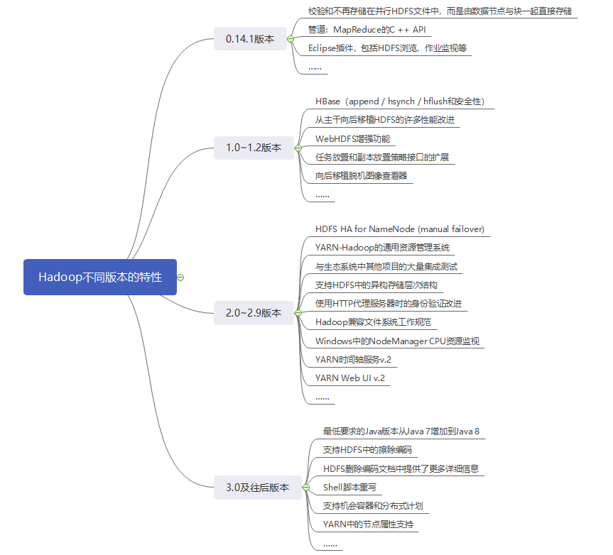 1.了解对比Hadoop不同版本的特性,可以用图表的形式呈现