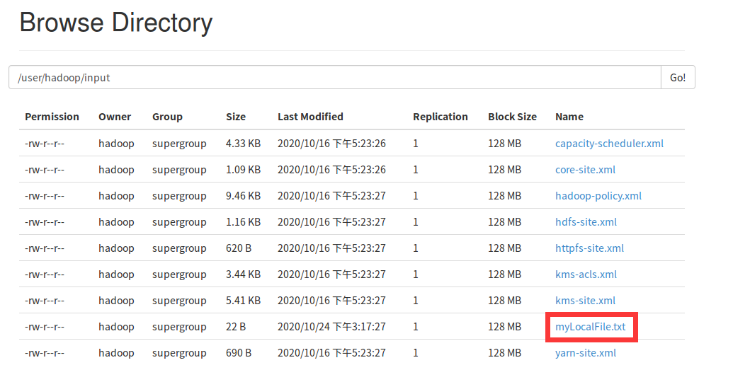 HDFS上查看相应目录
