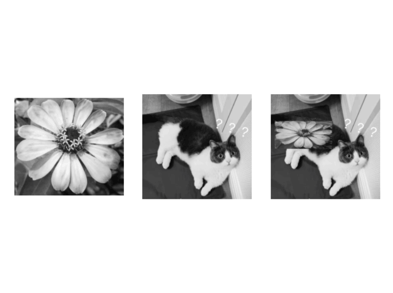 图一为flower的灰度图像,图二为cat的灰度图像,通过修改tp = array([[264,538,540,264],[40,36,605,605],[1,1,1,1]])这一行的坐标点可以改变图一映射在图二的位置,其中前四个数字代表四个角点的纵坐标,中间四个数字代表四个角点的横坐标,四个角点的顺序为从左上角开始按照逆时针方向排序,最后四个数字代表四个角点的α通道。