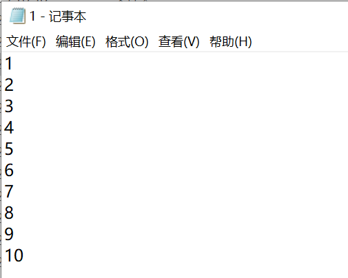 a=[] for i in range(10): t=i+1 a.append(t) print(a) with open ('1.txt','w') as q: t='' for e in range(len(a)): t = str(t) + str(a[e])+'\n' #数字要改字符串型 print(t) q.write(t) #q.write('\n') 结果------------------------------------