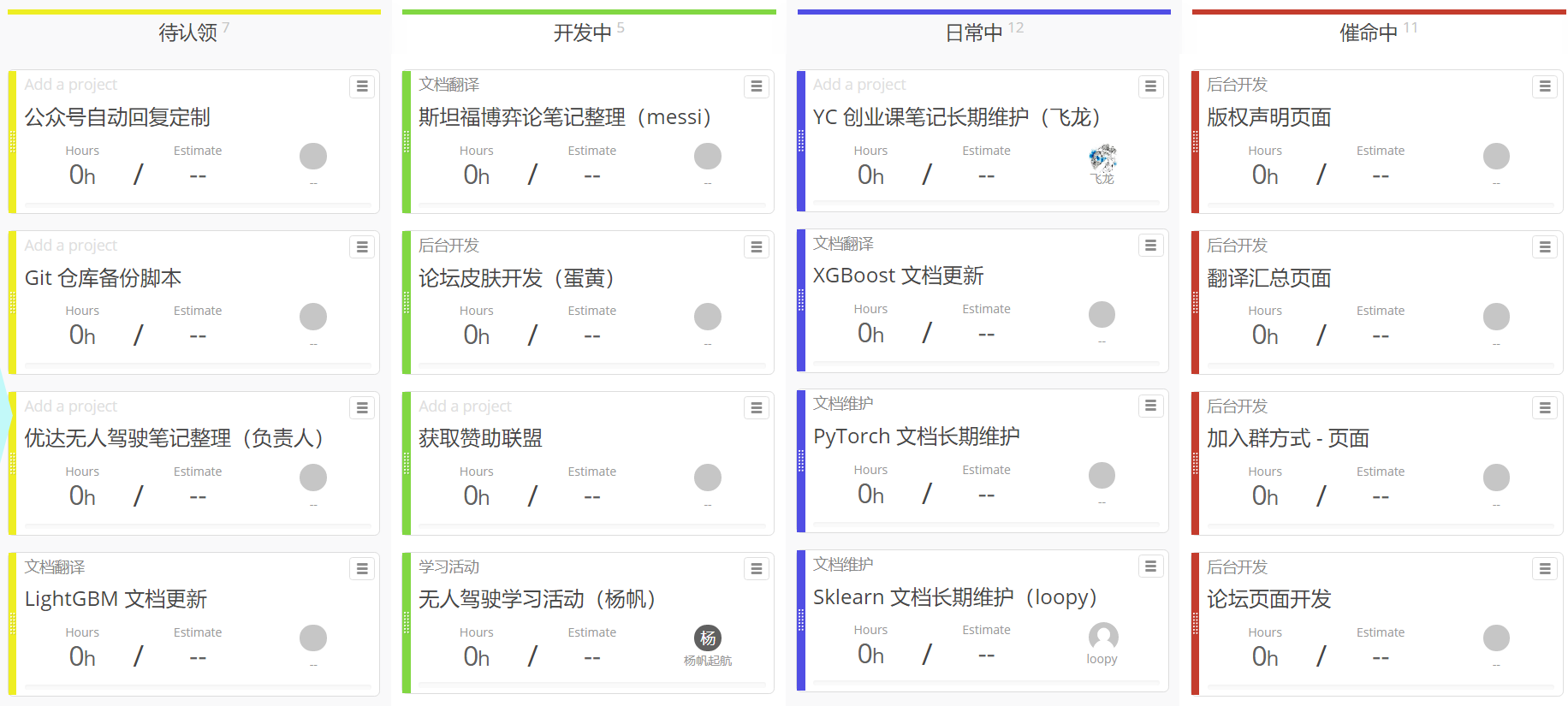 - 现有翻译项目(t.cn/AijId2zY)可以直接在 ISSUE 中认领,翻译/校对三个文档就可以申请当负责人。