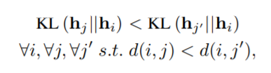 其中d(i, j)是从节点v[i]到v[j]的最短距离,KL[q(·) || p(·)]是q(·)和p(·)之间的 KL 散度 [89]。 换句话说,约束确保节点对之间的 KL 散度,具有与图距离相同的相对顺序。 但是,因为公式 42 难以优化,基于能量的损失 [90] 被用作松弛: