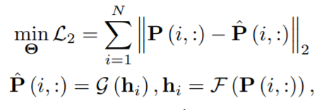 其中P是转移矩阵,P^是重构矩阵,h[i] ∈ R^d是节点v[i]的低维表示,F(·)是编码器,G(·)是解码器,d << N是维数,以及Θ是参数。 编码器和解码器都是具有许多隐藏层的多层感知器。 换句话说,SAE 试图将P[i, :]的信息压缩成低维向量h[i]并重建原始向量。 SAE 还增加了另一个稀疏正则化项。 在获得低维表示h[i]之后,k-means [85] 被应用于节点聚类任务,据证明它在经验上优于非深度学习基线。 然而,由于理论分析不正确,这种有效性背后的机制仍然无法解释。