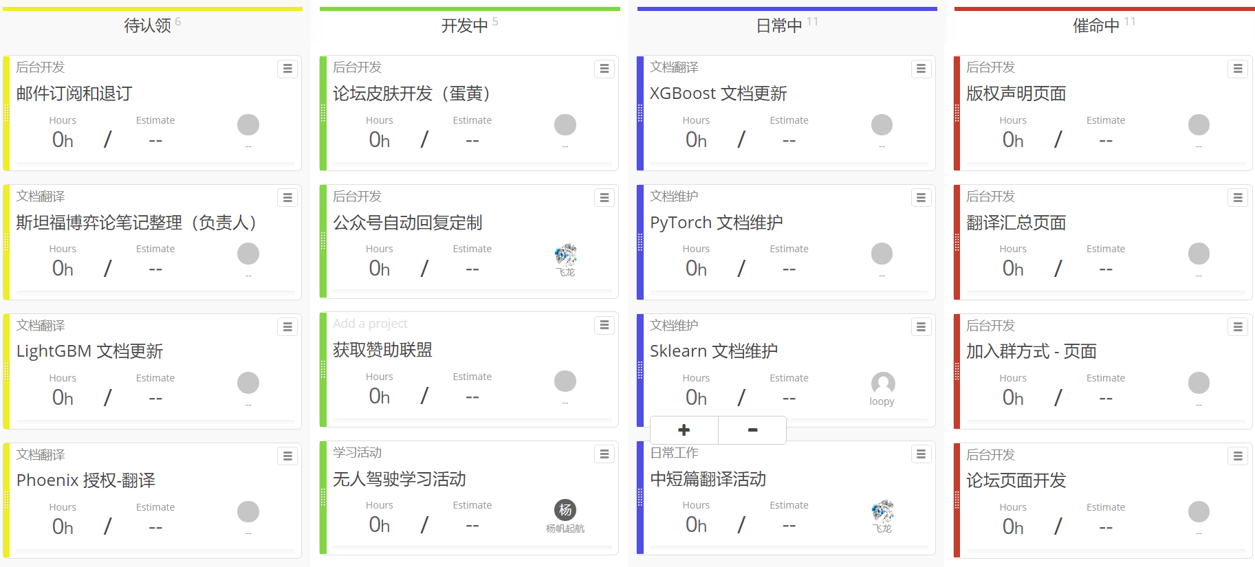 - 现有翻译项目可以直接在 ISSUE 中认领,翻译/校对三个文档就可以申请当负责人。