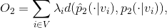 其中|V|是顶点或“上下文”数量。对于每个顶点v[i],公式(4)实际上定义了上下文中(即网络中的整个顶点集)的条件分布p[2](·|v[i])。 如上所述,二阶邻近度假设在上下文中具有相似分布的顶点彼此相似。 为了保持二阶邻近度,我们应该使由低维表示指定的上下文条件分布p[2](·|v[i])邻近经验分布^p[2](·|v[i])。 因此,我们最小化以下目标函数: