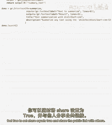 在这里,我们有我们的渐变演示,那么让我们运行它,看看它看起来如何,在这里,我们可以看到它与我们之前在文本摘要中演示的类似,我们有像那里的梯度文本框功能,但在这里,我们有一种新的输出。