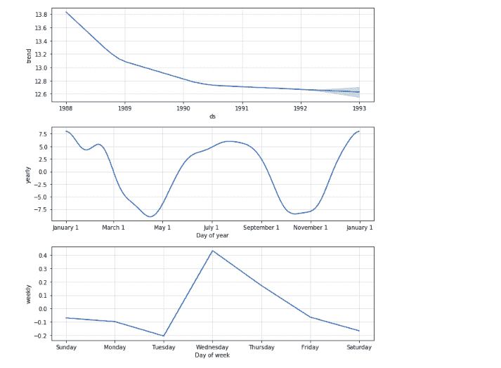 plot_components 方法绘制了时间序列数据的趋势、年度和每周季节性。