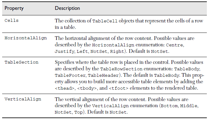 29: tabProgramming.Rows.Add(tr1); 30: tabProgramming.Rows.Add(tr2); 31: }11.4 Creating Accessible Tables